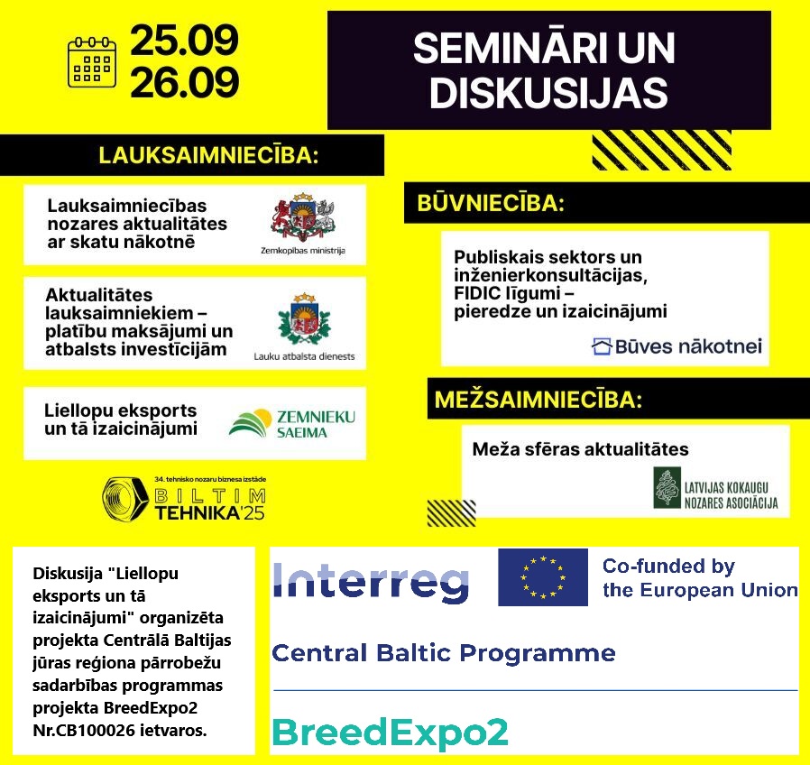 25.-27. septembris biznesa centrā RĀMAVA norisināsies lauksaimniecības biznesa izstāde “BILTIM TEHNIKA 2025” – viss aktuālais par augkopību, lopkopību, dārzkopību! Pasākuma ietvaros, 25.septembrī plkst. 14.00-16.30 Zemnieku saeima organizē prezentāciju un diskusiju ciklu “Liellopu eksports un tā izaicinājumi”